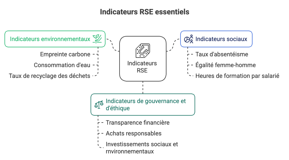- Les indicateurs RSE constituent des outils de pilotage stratégique qui mesurent l'impact environnemental, social et de gouvernance de votre entreprise,